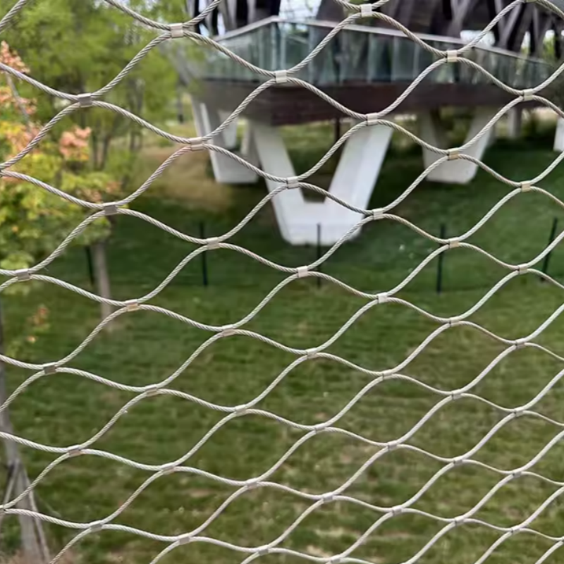 Oprócz architektury, ta siatka z lin stalowych jest szeroko stosowana w scenariuszach bezpieczeństwa i ochrony. Może być instalowana jako bariery ochronne w ogrodach zoologicznych, wolierach i ogrodzeniach dla zwierząt, zapewniając bezpieczne zamknięcie, jednocześnie umożliwiając naturalne światło i wentylację. Elastyczność i wytrzymałość siatki z kabli ze stali nierdzewnej sprawiają, że nadaje się również do stosowania w systemach ochrony przed upadkiem i mostach wiszących, gdzie bezpieczeństwo jest najważniejsze.